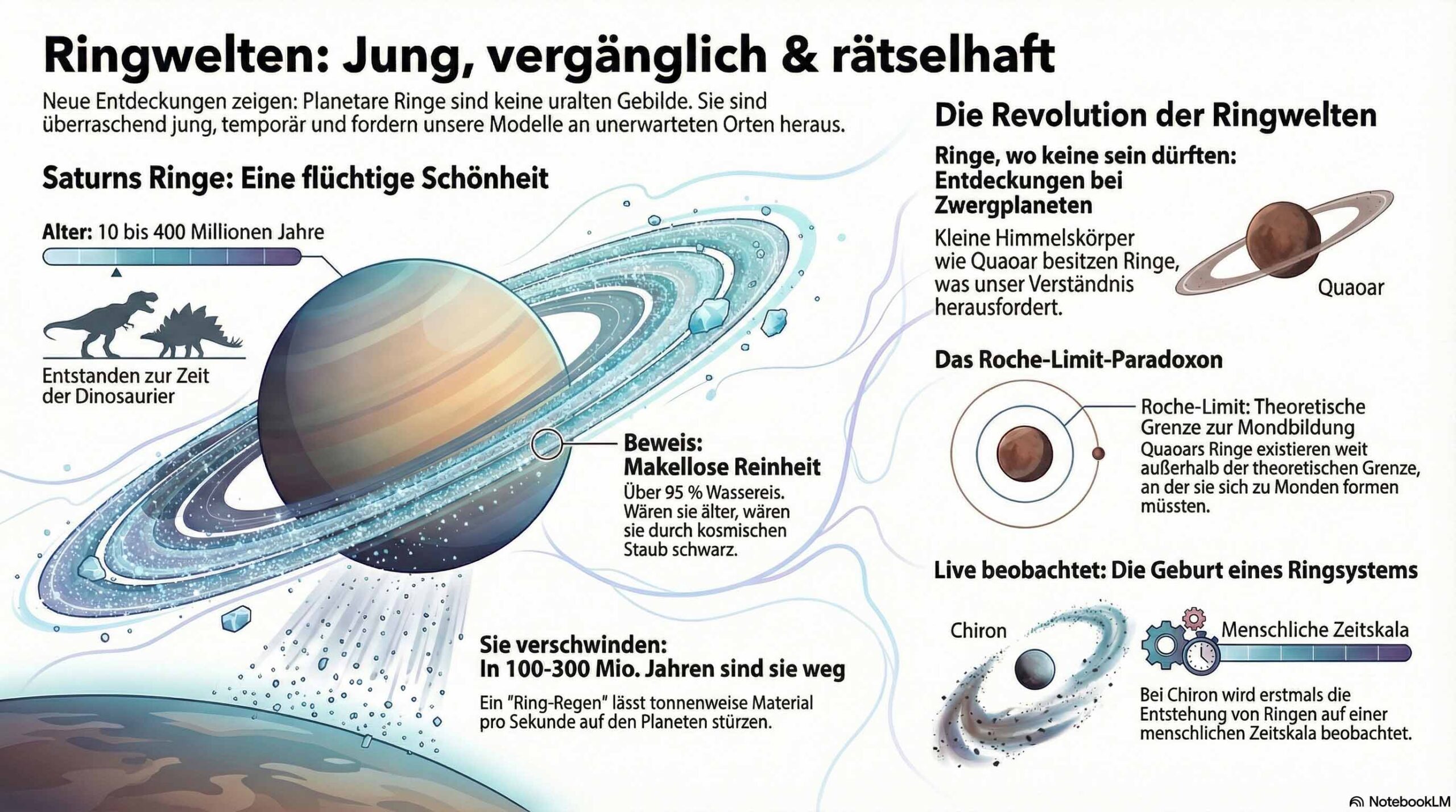 Ringplaneten sind weit mehr als kosmische Dekoration. Sie sind Laboratorien, die uns Prozesse im Universum verstehen lassen.